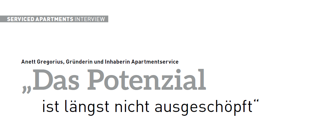 Die Angebote der Serviced Apartments haben sich längst im Hospitality-Bereich etabliert. Die Branchen-Expertin Anett Gregorius, Gründerin und Inhaberin Apartmentservice, spricht im Interview über die Marktsituation, Auswirkungen der Corona-Pandemie und Immobilienkrise, aktuelle Trends bei der Objekteinrichtung und Zukunftschancen.