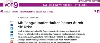 Adina Hotels, ipartment, Visionapartments oder Smartments Business – sie alle hatten im März 2020 weiter alle Häuser geöffnet, die Brera Serviced Apartments starteten Anfang April sogar ihr neues Haus in Leipzig, und viele Betreiber wie die Adapt Apartments oder The Spot - Serviced Apartments…